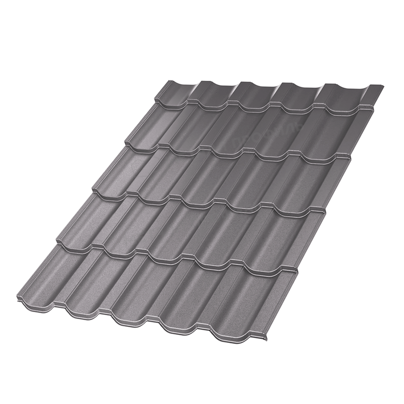 Профиль представляет собой симметричную волну с высотой ступеньки 25 мм и шириной модуля 350 мм, что создает эффект классической керамической черепицы. Такая форма обеспечивает отличную жесткость листа и равномерное распределение нагрузки. Длина волны адаптирована для удобного монтажа на различных уклонах крыш, от 12° и выше. Профиль минимизирует отходы при раскрое благодаря модульной конструкции. В сером цвете он подчеркивает минималистичный дизайн, подходя для современных архитектурных решений. Кроме того, специальная геометрия профиля улучшает вентиляцию подкровельного пространства, предотвращая конденсат и продлевая срок службы всей конструкции.